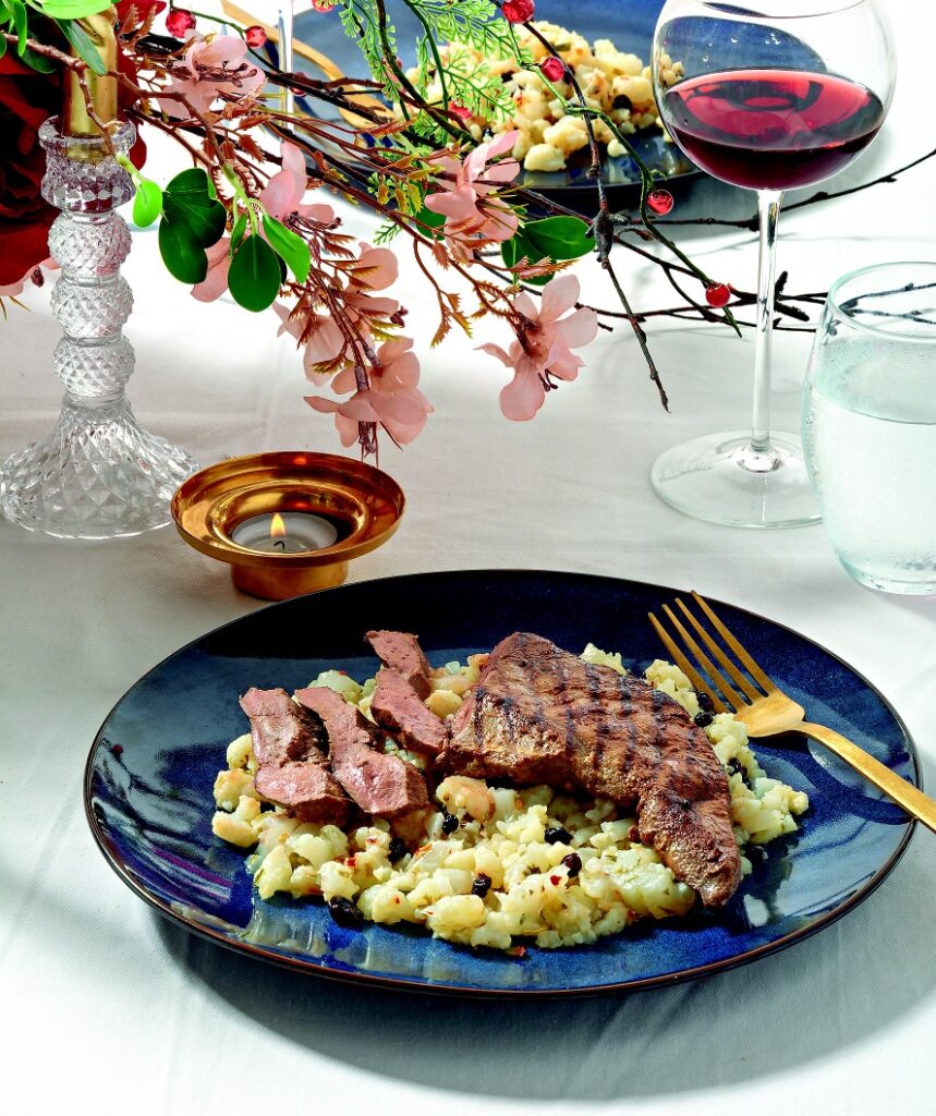 Συκώτι μοσχαρίσιο, με κουνουπίδι και εστραγκόν με σταφίδες