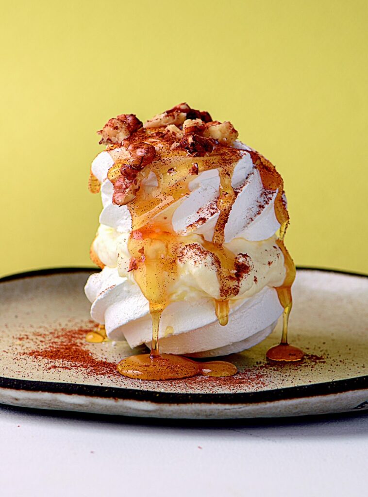 Το απόλυτο γλυκό. Το σιροπιαστό ραβανί δένει εξαιρετικά με την κρέμα μαστίχας και το παγωτό καϊμάκι και δημιουργεί ένα λαχταριστό γλύκισμα. Δείτε αναλυτικά τη συνταγή εδώ.