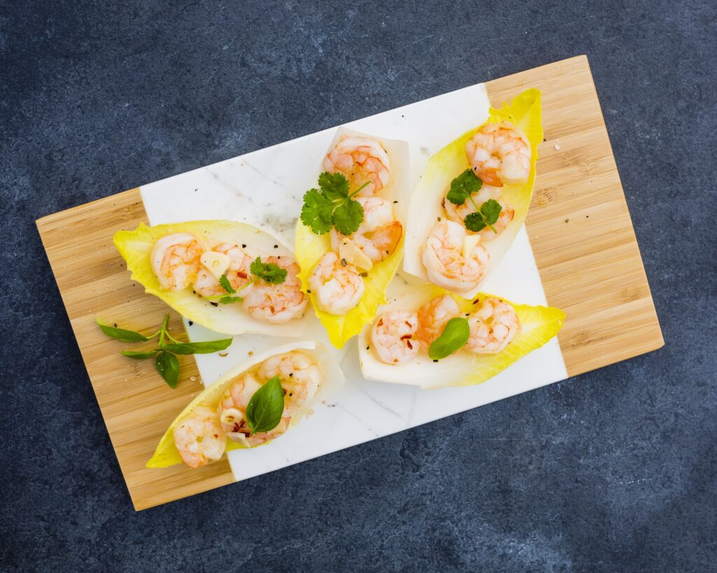 Κρύα γαριδοσαλάτα σε φύλλα σικορέ