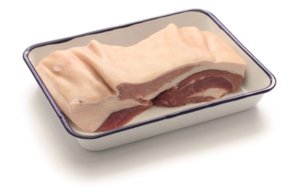 Το κομμάτι που χρειαζόμαστε για την παρασκευή της είναι χοιρινή πανσέτα χωρίς κόκαλο, με δέρμα. Το κομμάτι αυτό βρίσκεται στην κοιλιά του ζώου, που σημαίνει πως διαθέτει μεγάλη ποσόστωση λίπους.