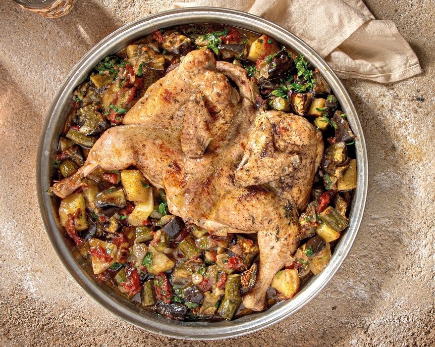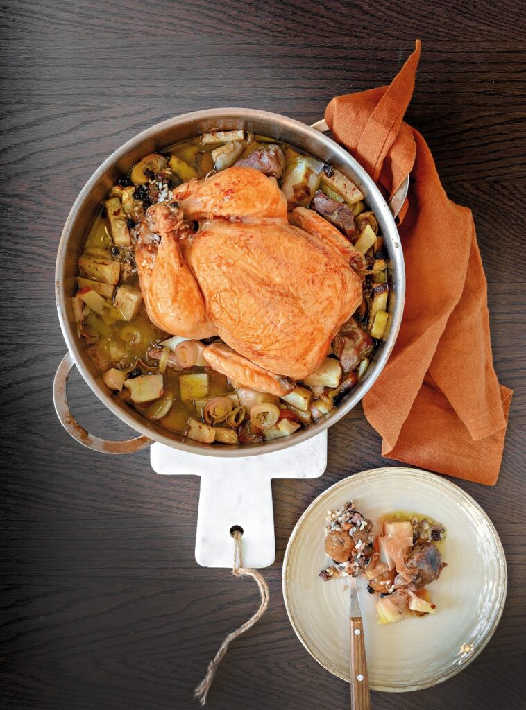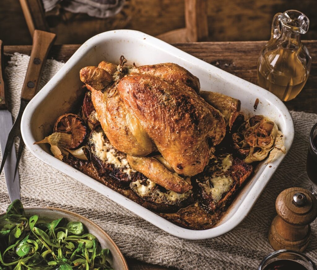 Σε αυτή τη συνταγή, το κοτόπουλο σιγοψήνεται στη γάστρα και ενισχύεται από τις γεύσεις και τα αρώματα του φινόκιο και του μαραθόσπορου. Δείτε αναλυτικά τη συνταγή εδώ.