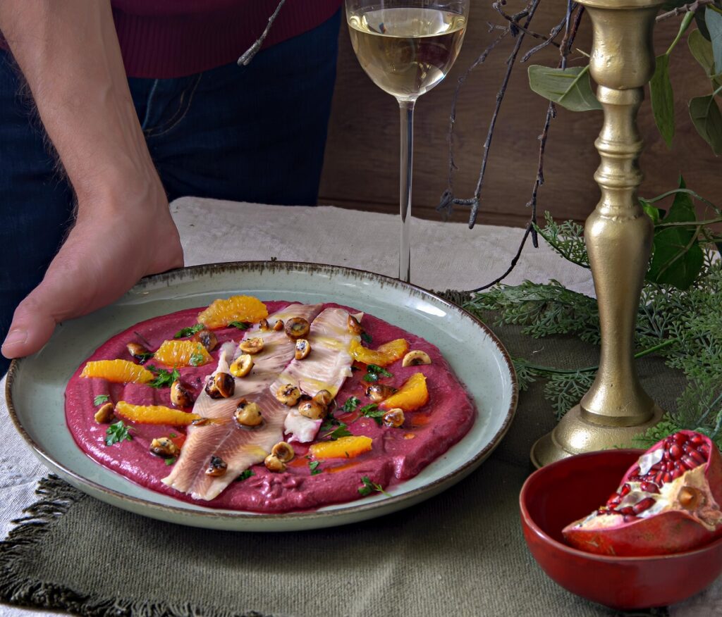 Κρέμα παντζαριού με καπνιστή πέστροφα