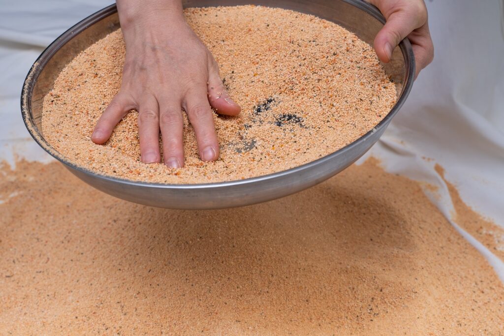 Τότε, και αφού οι νοικοκυρές είχαν βεβαιωθεί ότι τα κομμάτια είχαν στεγνώσει πλήρως, έπιανε δουλειά το κόσκινο. Οι μικροί, ακανόνιστοι κόκκοι που προέκυπταν, αφήνονταν και πάλι στον ήλιο να ξεραθούν. Ο τραχανάς ήταν έτοιμος για φύλαξη σε δοχεία ώστε να χρησιμοποιηθεί μέσα στον χρόνο.