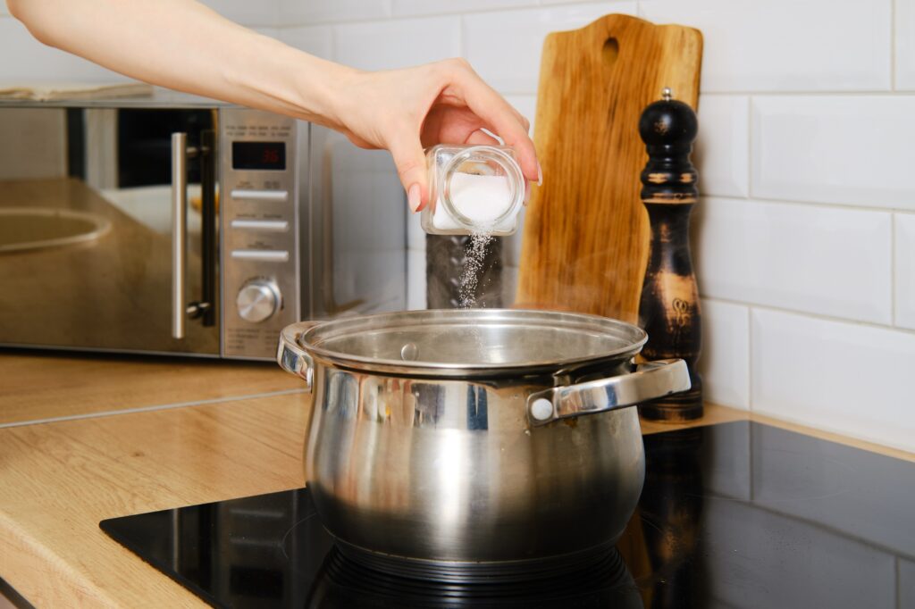 Πολλοί ρίχνουν το αλάτι απευθείας πάνω από την κατσαρόλα ή το ταψί. Αυτό αυξάνει τον κίνδυνο να πέσει μεγαλύτερη ποσότητα από την επιθυμητή. Είναι προτιμότερο να το μετράτε πρώτα σε ένα κουταλάκι ή σε ένα μικρό μπολ.