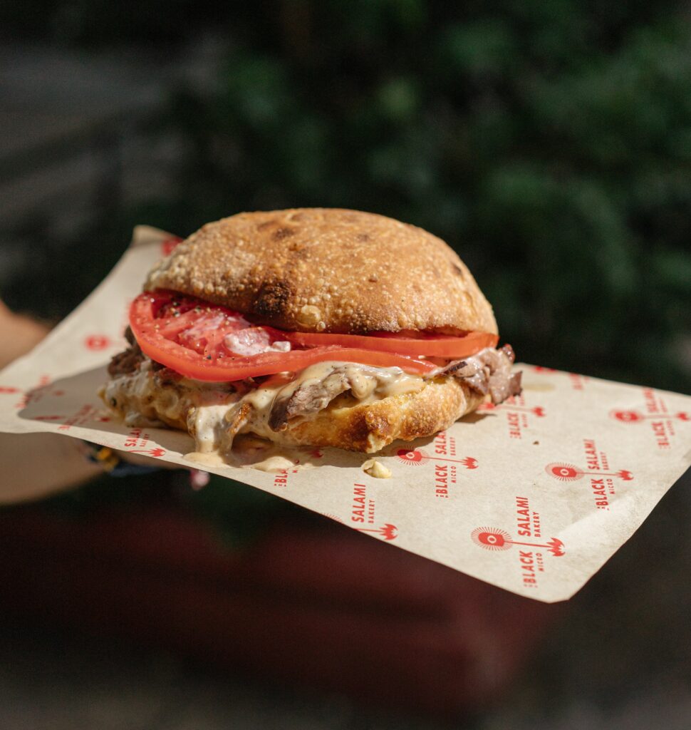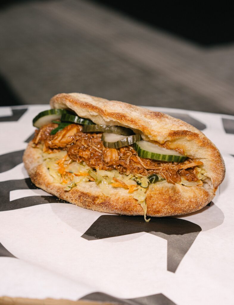 Στα βόρεια προάστια δοκιμάσαμε το panzetti, ψωμί εμπνευσμένο από το ιταλικό panzerotti, αλλά χωρίς τηγάνισμα. Η γέμιση; Pulled pork μαγειρεμένο για 12 ώρες, coleslaw που δίνει ισορροπία και πίκλες αγγουριού για οξύτητα. Το κόβετε στη μέση και η γεύση αναδεικνύεται ακόμη περισσότερο.