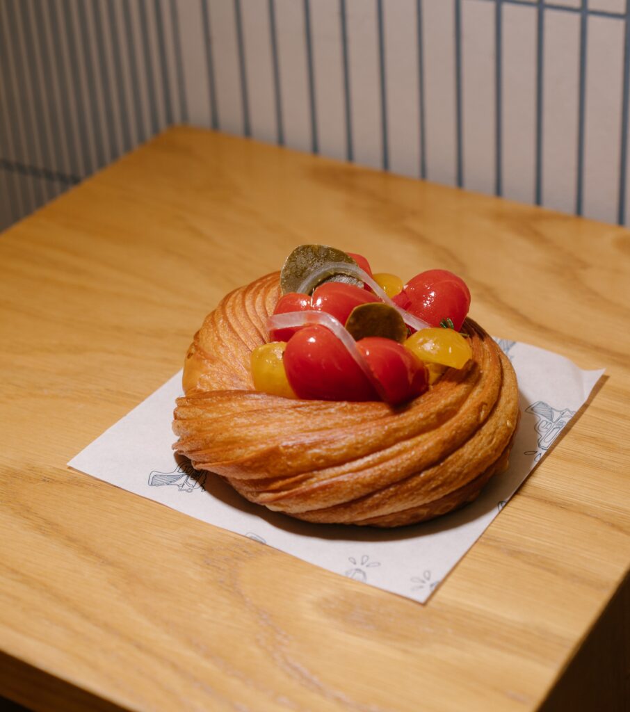 Σε αυτόν τον φούρνο νέας γενιάς τα κρουασάν γίνονται ανάρπαστα. Και όχι άδικα. Έχουν πλούσια βουτυράτη γεύση, εσωτερικά ωραία κυψέλωση και εξωτερικά είναι όσο τραγανά πρέπει. Εκτός από τις γλυκές εκδοχές του, στη μικρή βιτρίνα τους βρίσκουμε και ένα αλμυρό το οποίο αλείφουν ελαφρώς στη βάση με πελτέ ντομάτας και το γεμίζουν με χοιρινό, κατσικίσιο τυρί και λίγα φύλλα βασιλικού που του χαρίζουν μια έξτρα δροσιά.
