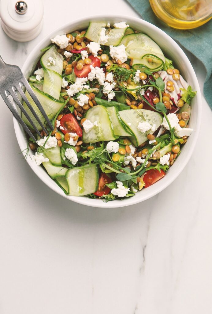 Σαλάτα με φακές, πλιγούρι και κατσικίσια φέτα