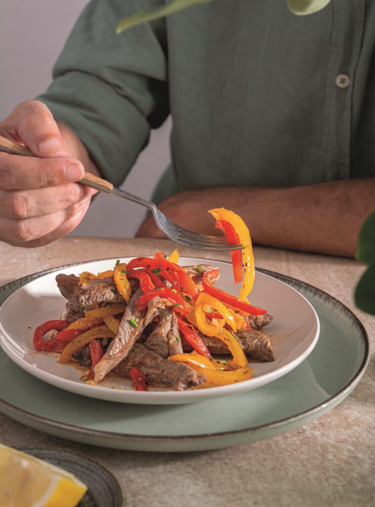 Τηγανιά με μοσχάρι και πολύχρωμες πιπεριές