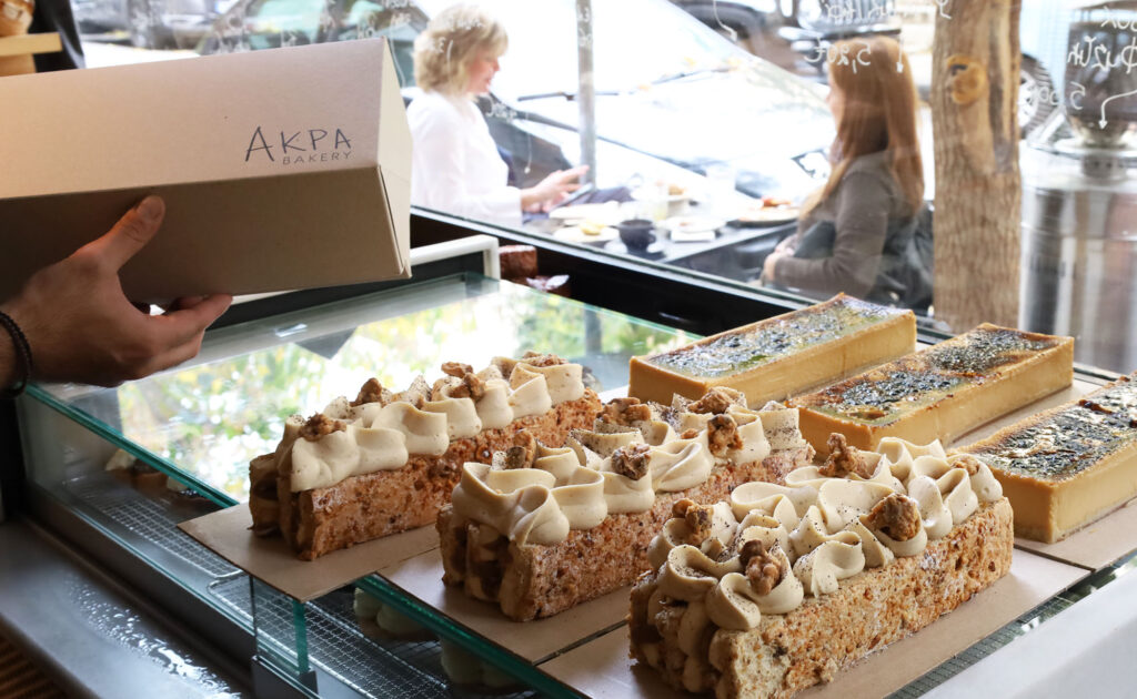 08:30: Μελομακάρονα με άρωμα από τα ζεστά μπαχαρικά, τέλεια μελωμένα και πασπαλισμένα με καρύδι. Όνειρο! Ειδικά η κάτω στρώση… «Αυτή η δουλειά…», λέω στον Γιώργο, «…είναι η καλύτερη», συμπληρώνει εκείνος λάμποντας. Είναι 10 χρόνια ζαχαροπλάστης και αγαπάει αυτό που κάνει. Πριν από τα Άκρα, έφτιαχνε πεντανόστιμα γλυκά στο Artisanal.