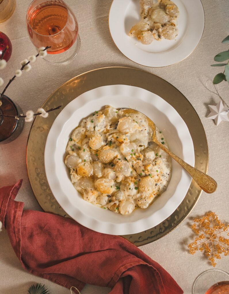 Κρεμμυδάκια σε γιορτινή λευκή σάλτσα με αρωματικό εστραγκόν