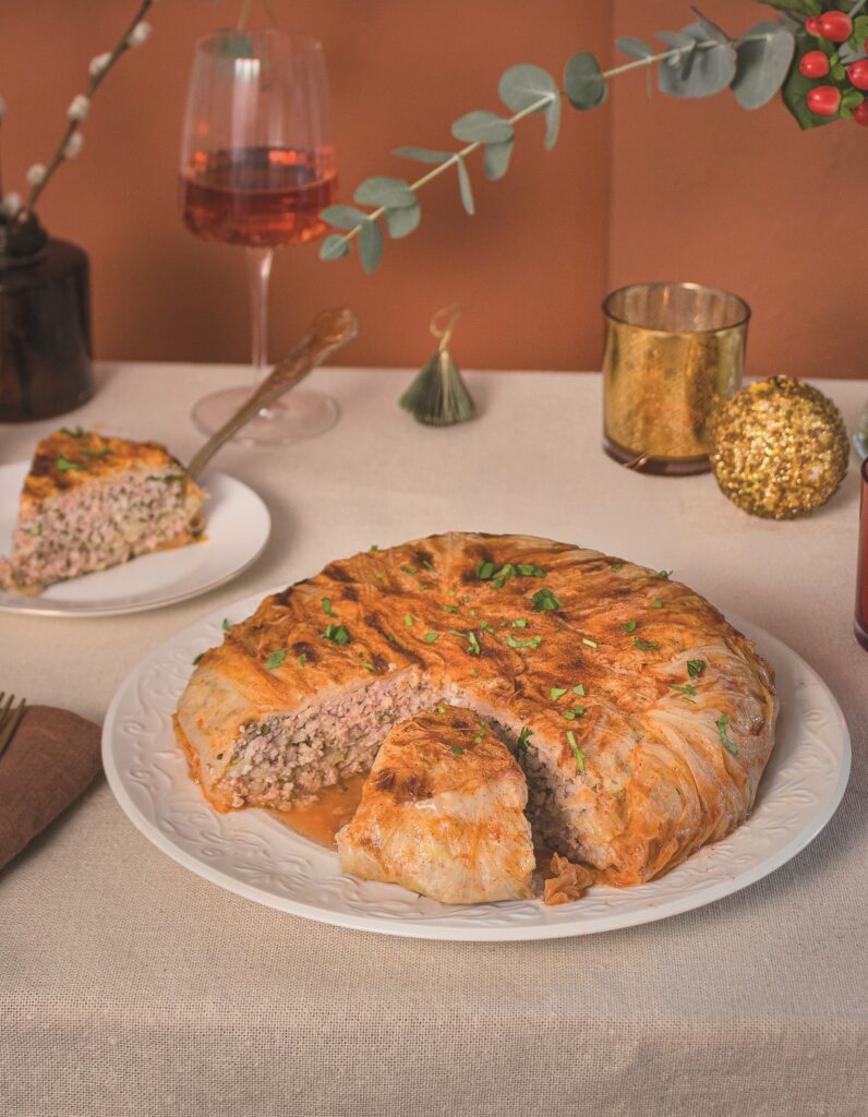 Γιορτινό τραπέζι δεν νοείται χωρίς λαχανοντολμάδες. Εδώ θα πρωτοτυπήσουμε λίγο και αντί για το κλασικό πιάτο θα φτιάξουμε πίτα-λαχανοντολμά. Δείτε αναλυτικά τη συνταγή εδώ.