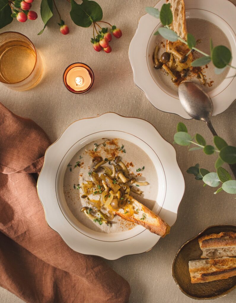 Μανιταρόσουπα με κρασί και καραμελωμένα κρεμμύδια