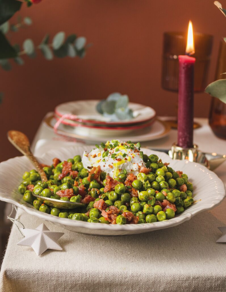 Χρώμα και γεύση στο ίδιο πιάτο. Αυτή η σαλάτα με αρακά, πανσέτα και κατσικίσιο τυρί είναι ιδανική για κάθε γιορτινό τραπέζι. Δείτε αναλυτικά τη συνταγή εδώ.