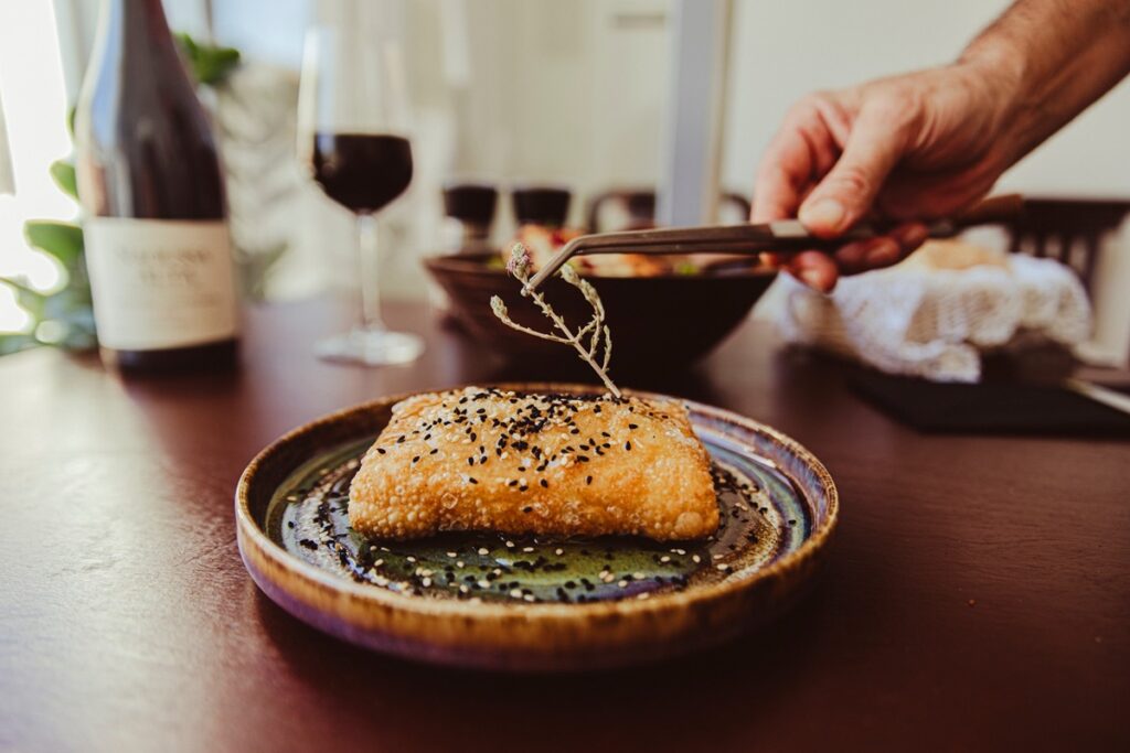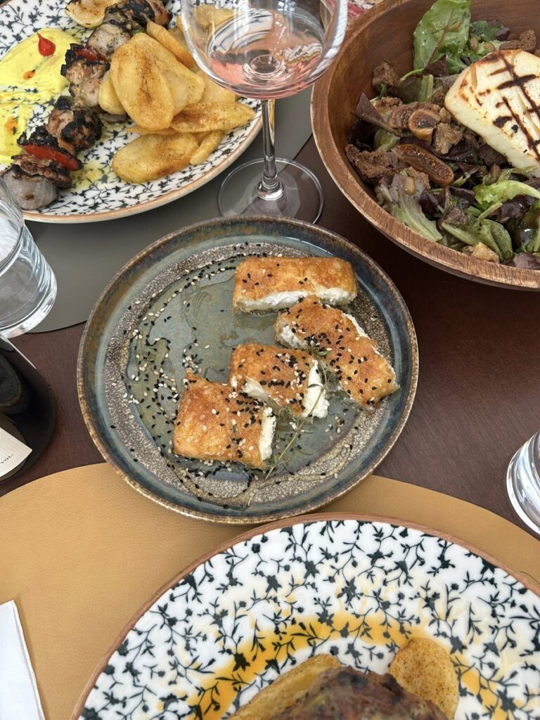 Και μπορεί τα πεντανόστιμα ξεροτήγανα να προσφέρονται ακόμη μετά τους γάμους ή να βρίσκονται σε κάθε σπίτι στον Κινίδαρο, στα χέρια του Κώστα όμως η ζύμη τους με τις έντονες νύξεις ρακής απογειώνει το σαγανάκι φέτας, το μέλι και το σουσάμι παραπέμπουν ευθέως στην παραδοσιακή γεύση, αλλά μετουσιώνονται και σε ένα καταπληκτικό γλυκό, ιδανικός επίλογος κάθε γεύματος στη Σαρωνιά. Δεν είναι άλλο από το εμπνευσμένο μιλφέιγ, μια απόλυτα σύγχρονη ερμηνεία της παράδοσης, όπου τα φύλλα σφολιάτας αντικαθίστανται από ξεροτήγανα ψημένα στο φούρνο και όχι τηγανισμένα ώστε να είναι ελαφρύτερα, και η κλασσική κρέμα δίνει τη θέση της σε μια υπέροχη κρέμα μπουγάτσας και σε μια αέρινη κρέμα με ντόπιο ανθότυρο.
