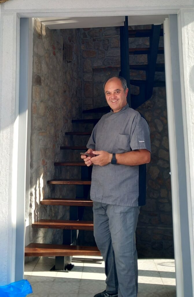 Με καταγωγή από τον Κινίδαρο ο Κώστας Καρποντίνης όπως και η σύζυγός του, κάτοικος Αθήνας αλλά με μεγάλη νοσταλγία για το χωριό του, ένοιωθε πάντα μια έλξη για τη μαγειρική και τη γαστρονομία. Πέρασαν σπουδές δύο χρόνων στον τομέα τεχνολογίας τροφίμων, θητεία ως μάγειρας σε γνωστό εστιατόριο της Σαντορίνης όπου και καταστάλαξε στην ιδέα να ανοίξει το δικό χώρο εστίασης, η πολυπόθητη επιστροφή στον τόπο του, διετείς σπουδές στη Σχολή Μαγειρικής της Νάξου για να πάρει τις σωστές βάσεις και να θέσει στο κατάλληλο πλαίσιο όσα είχε δει στην πράξη, ατέλειωτες ώρες στην κουζίνα, δοκιμές, νεωτεριστικές ιδέες και η αναζήτηση της ιδανικής ισορροπίας με τις αυθεντικές αξιώτικες γεύσεις. Και κυρίως μεράκι και αγάπη για την τέχνη της μαγειρικής, με αποτέλεσμα ένα μενού 35 περίπου πιάτων, που μάλιστα πολύ συνειδητά εστιάζει σε παραδοσιακά μαγειρευτά, ώστε να μην ανταγωνίζεται την ταβέρνα που καθιέρωσε το χωριό του ως top προορισμό κρεατοφαγίας στη Νάξο.