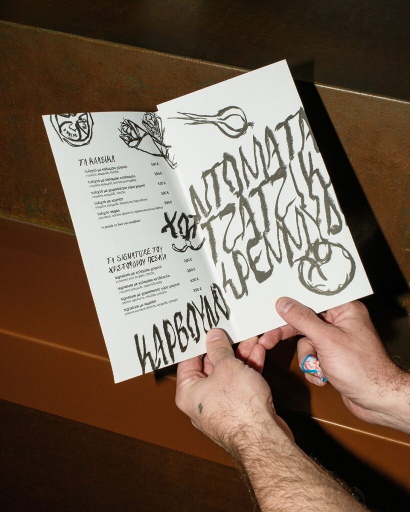 Αυτό το πνεύμα διαπερνά και τη δουλειά τους, ειδικά στα γαστρονομικά projects. Εμπνέονται από την καθημερινή ζωή της πόλης, την ιστορία της και φυσικά τους ανθρώπους της. «Οι ιδέες ξεκινούν από μια κεντρική αφήγηση και γύρω της χτίζονται όλα τα στοιχεία», τονίζει.