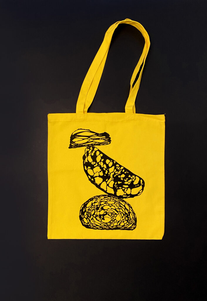 Για το εστιατόριο Pharaoh επέλεξαν ένα έντονο πράσινο (φωτογραφία Μυρτώ Τζήμα), ενώ στις tote bags του Kora πρωταγωνιστεί το κίτρινο.