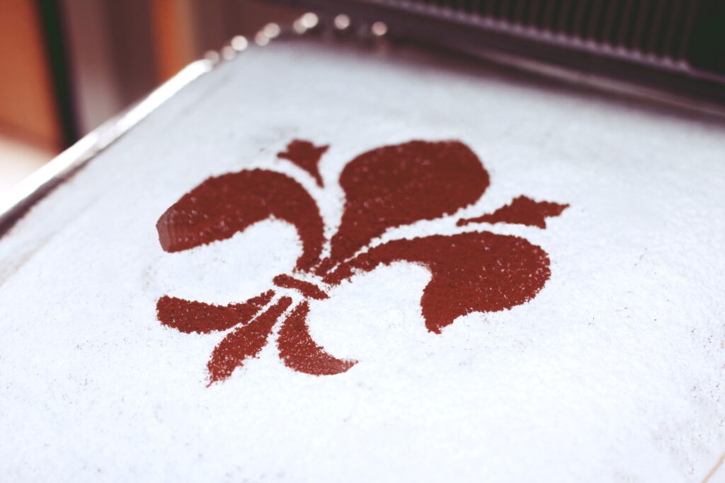 Σκόνη πικρού κακάο για το σχέδιο του κρίνου (Giglio) της Φλωρεντίας, το οποίο θα εκτυπώσετε και θα κόψετε σαν στένσιλ από το internet