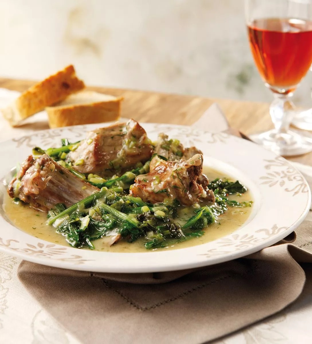6. Αρνάκι Φρικασέ: Μια συνταγή που έχει δανειστεί όνομα γαλλικής τεχνικής, αλλά εκφράζει απόλυτα τις ανοιξιάτικες ελληνικές γεύσεις. Με τα αμνοερίφια να είναι στην πιο τρυφερή τους φάση κατά την άνοιξη, χωρίς βαριές μυρωδιές και έτοιμα να παντρευτούν με μαρούλια, αντίδια ή χόρτα που θα επιλέξει ο μάγειρας. Με τα φρέσκα κρεμμυδάκια, τον άνηθο ή τον μάραθο να εμπλουτίζουν αρωματικά, και το αυγολέμονο να δένει με κομψότητα το σύνολο, θεωρώ πως το φρικασέ είναι ένα γαστρονομικό αριστούργημα. Προσωπικά θα επέλεγα κατσικάκι αντί για αρνάκι, γιατί το κατσίκι στην κατσαρόλα, όντας πιο άλιπο απ’ το αρνί, βγαίνει εξαιρετικά νόστιμο και πιο ελαφρύ.