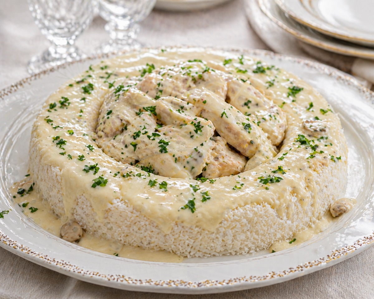 8. Κότα Μιλανέζα: Ο Τσελεμεντές βάφτισε με αυτό το όνομα μια γαλλική συνταγή για κοτόπουλο βραστό με ρύζι και σάλτσα σουπρέμ, υποδεικνύοντας ένα εντυπωσιακό τρόπο σερβιρίσματος με το ρύζι σε φόρμα από στρογγυλό κέικ, τα κομμάτια του κοτόπουλου στο κενό του κέντρου και την πηχτή, υπόλευκη σάλτσα, περιχυμένη από πάνω τους. Ένα πολύ νόστιμο πιάτο που όμως όταν μπαίνει στο πιάτο απ’ την εντυπωσιακή πιατέλα, δεν έχει σχήμα ή χρωματικές αντιθέσεις που να το κάνουν εστιατορικό, οπότε έμεινε στα σαλόνια.