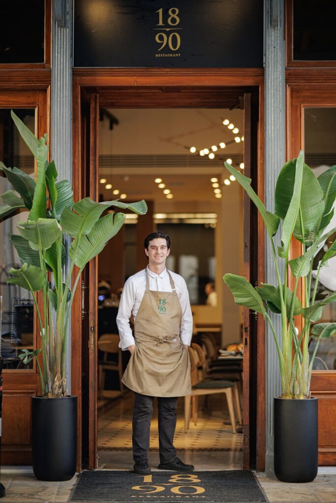 Περνώντας την επιβλητική ξύλινη πόρτα με τα μεγάλα παράθυρα, η ανοιχτή σάλα με τα πολλά φυτά εσωτερικού χώρου, θα δώσει από την αρχή το στίγμα: αριστοκρατικό, αστικό, ζεστό περιβάλλον. Στο βάθος, πίσω από γυάλινες επιφάνειες, η κουζίνα λειτουργεί σαν σκηνή. Εκεί βρίσκεται ο Χρήστος Σιδηρόπουλος, σεφ με διαδρομή που δεν ακολούθησε την πιο αναμενόμενη πορεία. Από σπουδές πληροφορικής, βρέθηκε σε επαγγελματικές κουζίνες του Λονδίνου, απορροφώντας τη μεθοδικότητα και την πειθαρχία τους, πριν επιστρέψει στην Ελλάδα για να διαμορφώσει τη δική του μαγειρική γλώσσα. Μια γλώσσα που την γνωρίσαμε στη Σύμη και στο εστιατόριο Agora. Εκεί όπου και φέτος, θα δημιουργεί πιάτα με τεχνική, αισθητική αλλά και νοστιμιά. Πιάτα που μπορεί να έχουν fine dinning προσανατολισμό, αλλά εκφράζουν μια σεμνότητα, σαν αυτή που χαρακτηρίζει τον σεφ.