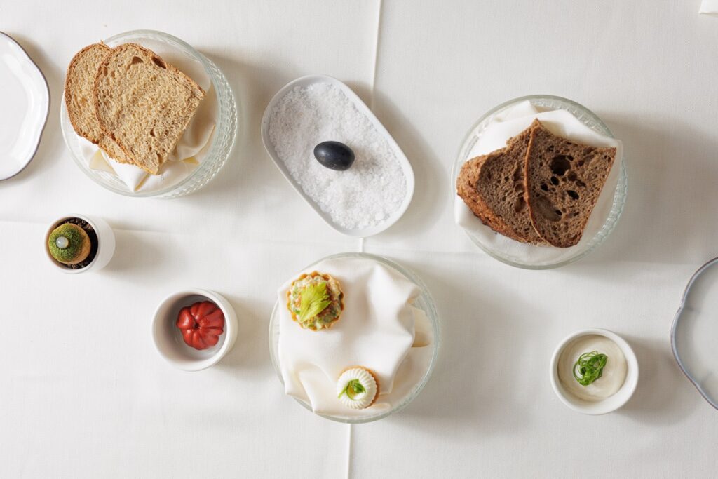 Αυτό που παρουσιάζει στο εστιατόριο 1890, δεν έχει διαφορετική φιλοσοφία. Η βάση του; Ελληνικές γεύσεις, υλικά και αναφορές. Με τεχνικές, όμως, που προσθέτουν ακρίβεια και βάθος χωρίς να αλλοιώνουν τον πυρήνα. Σαν τις μικρές μπουκιές του καλωσορίσματος. Όπως η σπανακόπιτα σε μορφή beignet (τηγανητό ψωμί που μοιάζει με λουκουμά) ή το ταρτάκι με τη σαλάτα Ceasar ή ακόμα την εικονική ελιά μπριάμ.