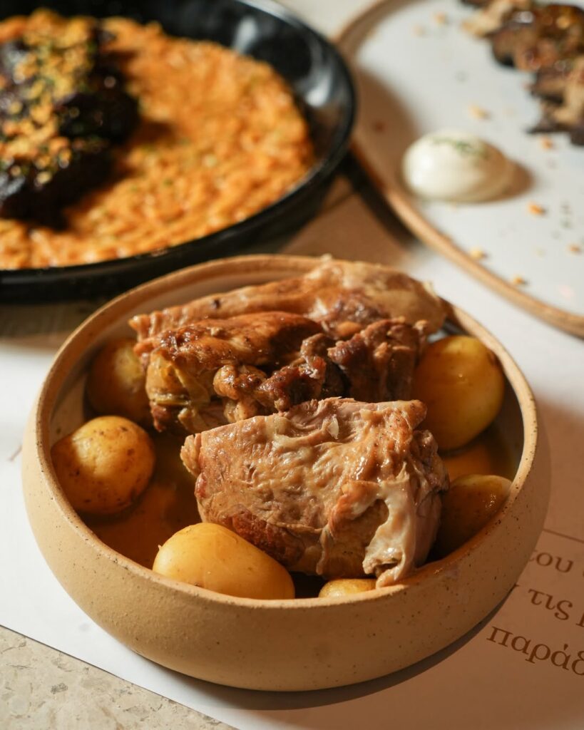 Ιδιαίτερη εντύπωση μου έκανε και η συζήτηση που είχαμε στο τέλος με τον σεφ. Ρωτώντας τον για τα κρεατικά, μας εξήγησε πως δεν χρησιμοποιούν τεχνικές όπως το sous-vide, αλλά δουλεύουν αποκλειστικά με κατσαρόλες, γάστρες και φούρνο, ακολουθώντας έναν πιο παραδοσιακό τρόπο μαγειρέματος.