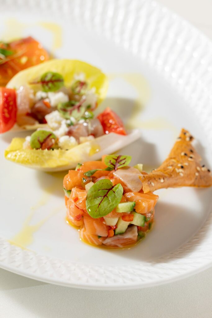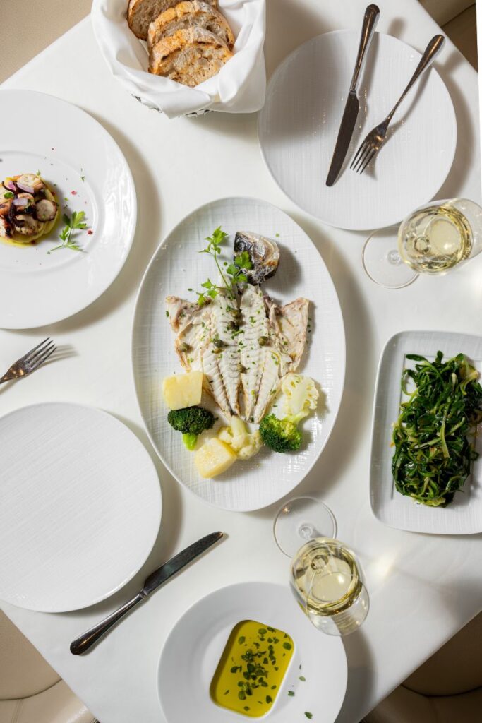 Η κουζίνα του Milos δεν προσπαθεί να αποδείξει κάτι. Και ίσως αυτό είναι το πιο ενδιαφέρον στοιχείο της. Σε ένα δείπνο ή σε ένα μακρόσυρτο μεσημεριανό, το γεύμα που αγαπώ ξεκινά με ωμά οστρακοειδή και ένα καρπάτσο ψαριού, κομμένο με ακρίβεια, με ελάχιστες παρεμβάσεις.
