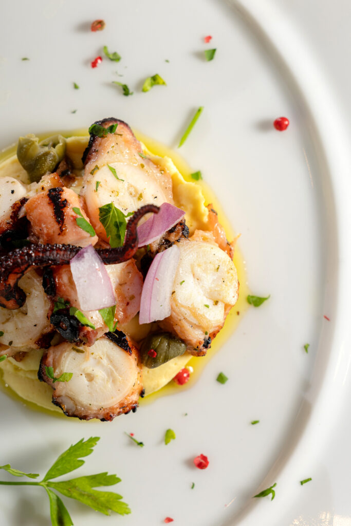 Γαρίδες στη σχάρα, με εκείνη τη γλυκύτητα που μόνο η σωστή πρώτη ύλη μπορεί να δώσει, χωρίς σάλτσες να τη σκεπάζουν, χωρίς υλικά να μπλέκουν. Κάθε φορά θυμάμαι τον Eric Frechon να περιγράφει τη σχέση του με την ελληνική ψαροφαγία: «Εντάξει, δεν έχετε την τεράστια ποικιλία άλλων χωρών, όμως έχετε τη φρεσκάδα. Και τη γεύση. Εσείς δεν χρειάζεται να τα μαγειρέψετε. Δεν χρειάζονται τίποτε περισσότερο από λίγο αλάτι. Ίσως και λίγο εξαιρετικό παρθένο ελαιόλαδο».