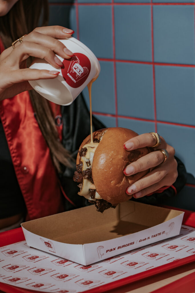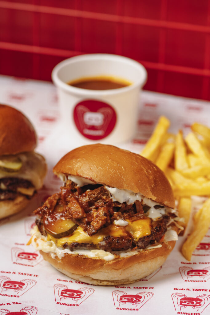 Στην ουσία, πρόκειται για προσθήκες στο ήδη ενδιαφέρον και με πολλές επιλογές στάνταρ μενού. Δύο μπέργκερ, λίγο πιο «πειραγμένα», ακόμη πιο πληθωρικά και με αμαρτωλούς συνδυασμούς. Φέτος, το concept «Pax Mess» κλείνει το μάτι στα Birria Tacos, τα μεξικάνικα tacos που σερβίρονται μαζί με ζεστό ζωμό κρέατος για να τα βουτήξεις, κάνοντας την εμπειρία λίγο messy, αλλά πραγματικά, ποιος νοιάζεται εκείνη την ώρα; Δεν έχουν γίνει άδικα ένα από τα πιο αγαπημένα street food της Αμερικής, αλλά και τάση στην παγκόσμια street food σκηνή. Τα δύο limited burgers του Pax, το ένα λιγότερο και το άλλο περισσότερο, θα μπορούσαν να θεωρηθούν μακρινοί τους συγγενείς, αφού συνδυάζουν το novelty της βούτας όχι με tacos, αλλά με μπέργκερ.