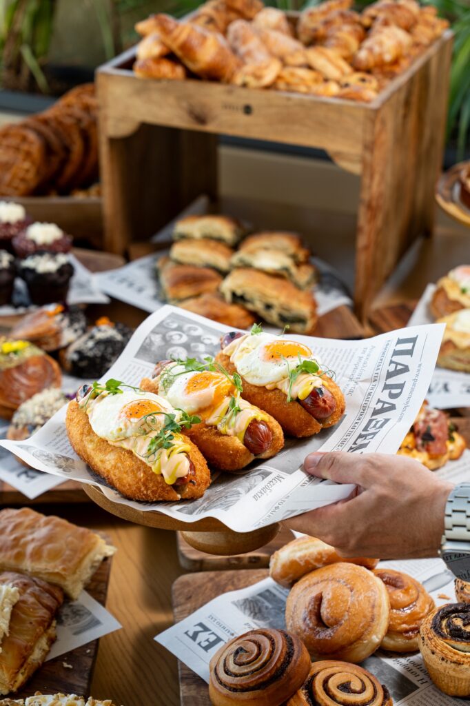 Το Rodopou & Beyond δεν αρκείται στα κλασικά. Φυσικά και θα βρείτε φρεσκοψημένες πίτες, αυγά σε κάθε εκδοχή και αφράτο τσουρέκι, αλλά δίπλα τους θα δοκιμάσετε πιάτα που έχουν χαρακτήρα – από το viral hot dog μέχρι cheesecake, mini donuts, cupcakes και χειροποίητες βάφλες με topping stations. Για τον σεφ, το brunch είναι παιχνίδι, δημιουργία και μνήμη. Όπως μας λέει: «Θέλω ο επισκέπτης να φεύγει χορτασμένος, αλλά και λίγο πιο ανάλαφρος. Να έχει περάσει καλά. Να πει: «Τι ωραία περάσαμε, να το ξανακάνουμε».