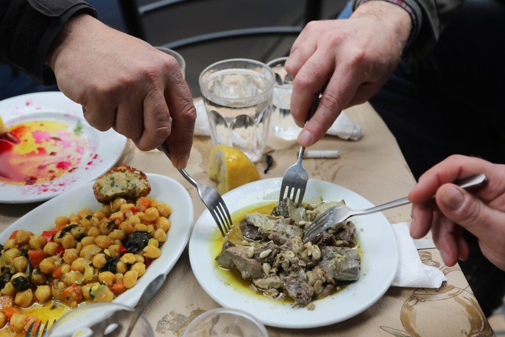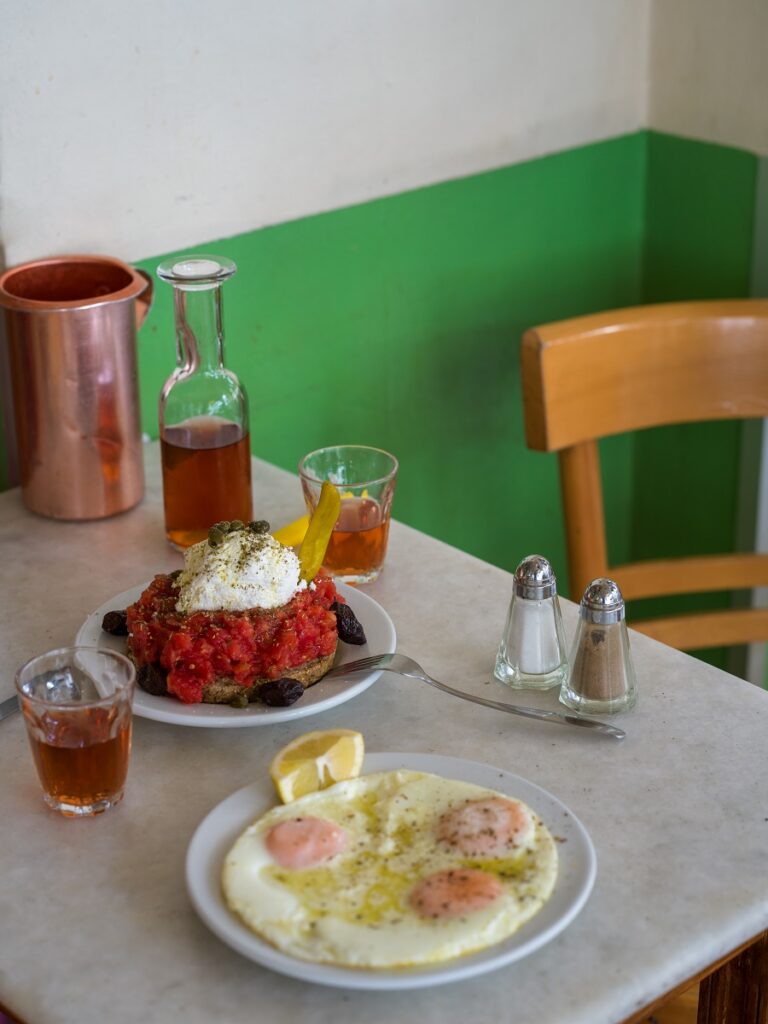 Τραπεζάκια στο πεζοδρόμιο που δεν λένε να αδειάσουν, παρέες και ζευγάρια από το μεσημέρι μέχρι αργά το βράδυ, «δυνατές» μουσικές, ρακή και ούζο (άφθονες ετικέτες για να επιλέξουμε) μαζί και μπίρες πλάι σε μεζέδες ενός καφενείου που μετρά ήδη 12 χρόνια ζωής. Ανάμεσα στα πιατάκια που σερβίρει, θα βρείτε αρκετά ελληνικά τυριά, πατατοσαλάτα, μαυρομάτικα σαλάτα, ντολμαδάκια, παστουρμά και σουτζούκι αρμένικο με αυγά μάτια και άλλα ελληνικά και νόστιμα σε μια σχέση δηλωμένη εξαρχής ως value for money.