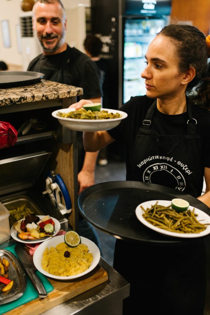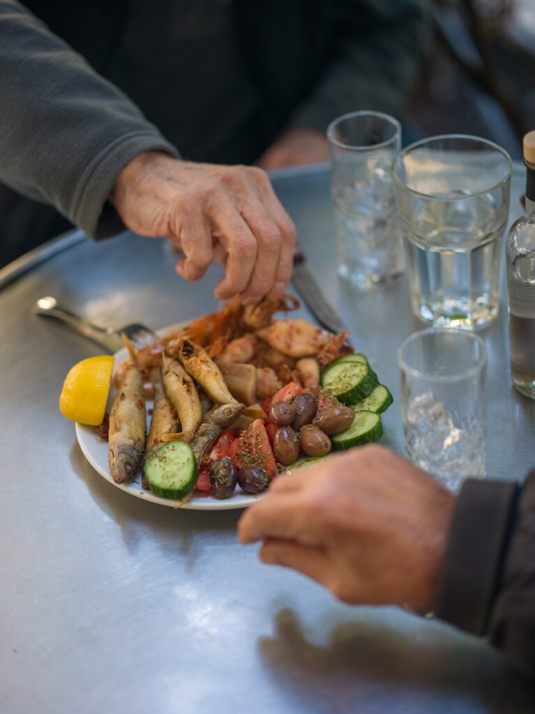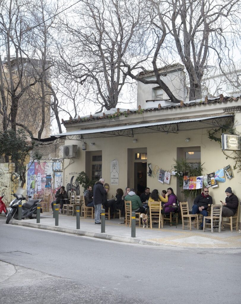 Ανάμεσα σε φοιτητές, διανοούμενους και παλιούς θαμώνες, βρίσκουμε τη θέση μας στο πολύβουο σκηνικό. Φωτεινός χώρος, παλιός πάγκος και ατμόσφαιρα που θυμίζει τα καφενεία της αυθεντικής Αθήνας. Δοκιμάζουμε γίγαντες φούρνου, γαύρο τηγανητό, πολίτικη σαλάτα και πατατοσαλάτα με μυρωδικά, όλα μαγειρεμένα με μεράκι και λάδι Ηπείρου, ενώ ένα ποτήρι ρακή ολοκληρώνει την εμπειρία.