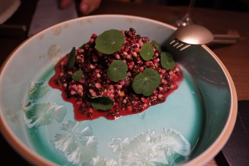 Ο κεντρικός κατάλογος αν και μεγάλος στο σύνολο του εντούτοις είναι ευδιάκριτα χωρισμένος σε ορεκτικά (the early catch) συνοδευτικά και σάλτσες (company & flavor boosts), αλλά και μια σειρά από κύρια πιάτα με το αντίστοιχο λογοπαίγνιο (The Core). Εδώ ο δημιουργικός οίστρος του σεφ παρουσιάζει συνθέσεις σαν εκείνη την με μεγάλο ενδιαφέρον σαλάτα με φάκες μπελούγκα, σορμπέ παντζάρι, μπλε καβούρι, τζίντζερ, φαγόπυρο και εκείνο το εξαιρετικό dressing από πορτοκάλι και φουντούκι, ή τo φρέσκο ραβίoλo με γαρίδες και τζίντζερ, λάδι και τσάτνευ τσορίθο-ντομάτα, αυγά σολομού και πέστροφας και μια ισορροπημένη θαλασσινή bisque. Μέσα από πάμπολλες επιλογές σε συνοδευτικά και σάλτσες για τα θαλασσινά steaks επιλέξαμε τα σιγομαγειρεμένα μάραθα με ελαιόλαδο, λεμόνι, τζίντζερ και καπνιστά πράσα και τα δημοφιλή πλέον παντού ψητά καρότα. Εδώ η προσθήκη του ταμάρινθου τους αφήνει μια φρουτώδη γλυκόξινη επίγευση. Μαζί τους έφθασε στο τραπέζι μια σάλτσα Vadouvan ή αλλιώς γαλλικό κάρυ και μια μπεαρνέζ με βασιλικό, αρκετά παχύρευστη κα έντονα αρωματική.