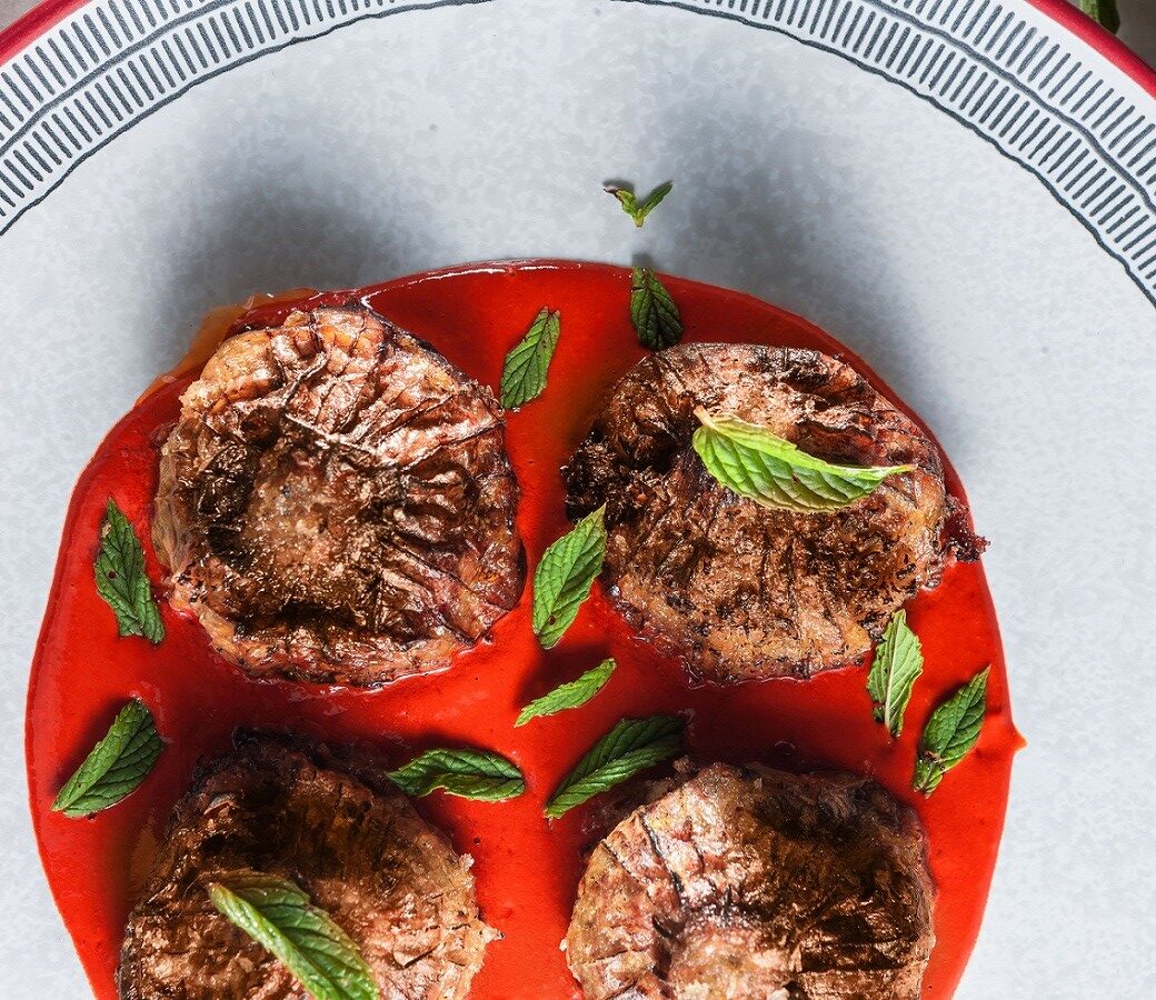 Κολοκυθοανθοί γεμιστοί με ξυνόχοντρο και λαχανικά σε σάλτσα (μόλε) δυόσμου