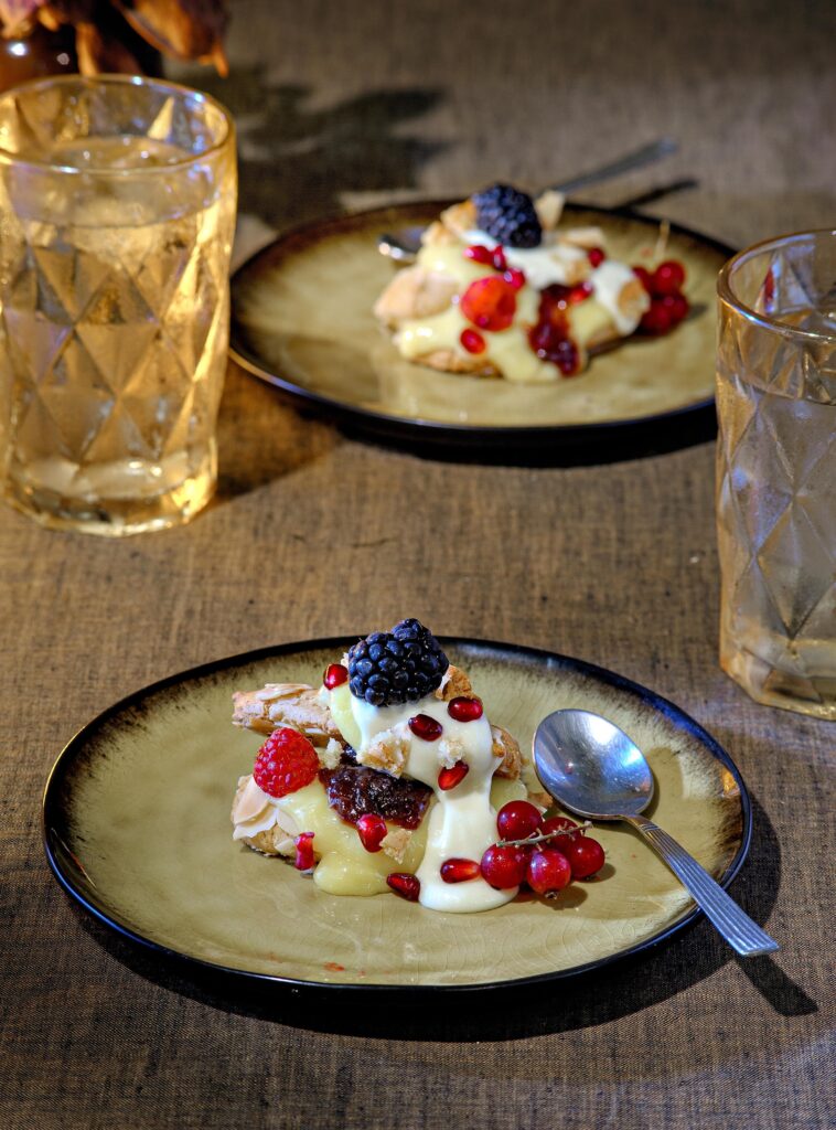 Ένα κομψό, δροσερό επιδόρπιο με τραγανούς εργολάβους, κρέμα λεμονιού και φρούτα του δάσους. Χρωματιστό, αρωματικό και ανάλαφρο, ιδανικό για όταν θέλουμε κάτι εντυπωσιακό χωρίς κόπο. Ένα μικρό finale που υπενθυμίζει ότι η γιορτινή περίοδος μόλις ξεκινά. Διαβάστε αναλυτικά τη συνταγή εδώ.