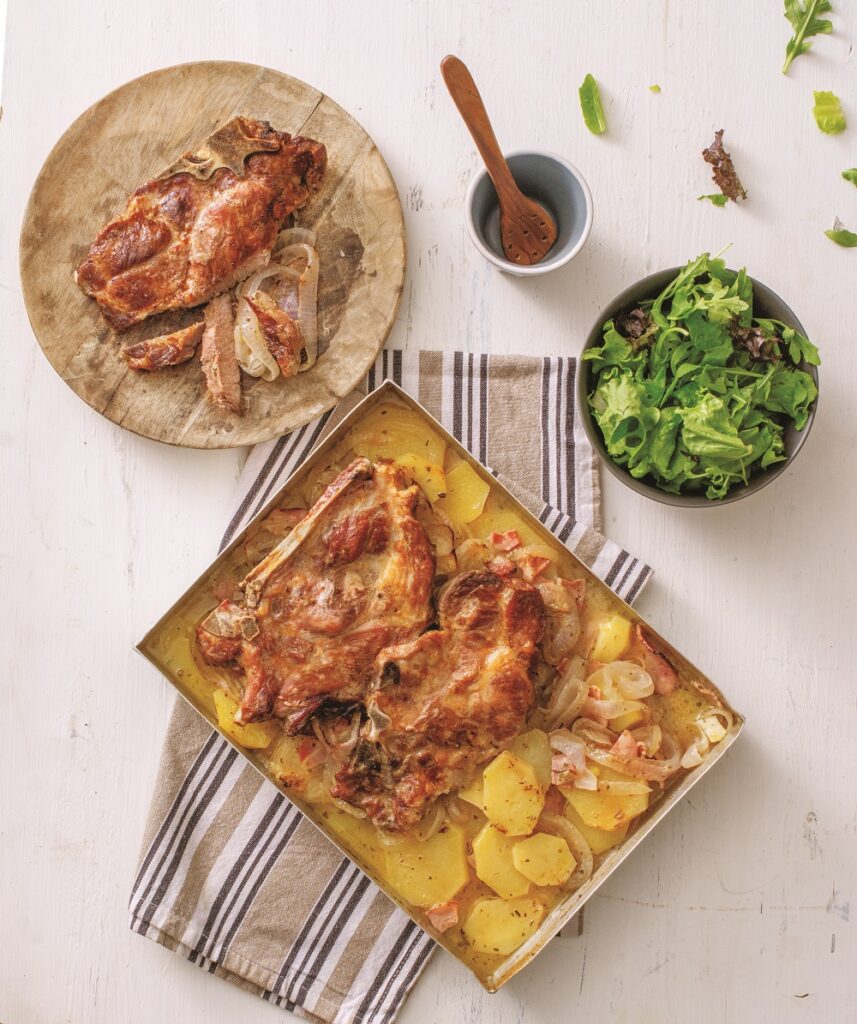 Χοιρινές μπριζόλες φούρνου με πατάτες και μπέικον