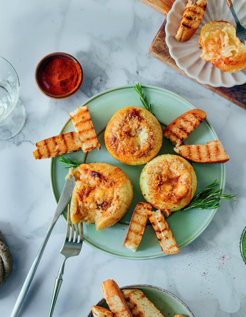 Λαχταριστά γεμιστά κρεμμύδια με βελούδινη μπεσαμέλ, γραβιέρα και καραμελωμένο κρεμμύδι. Δείτε αναλυτικά τη συνταγή εδώ.