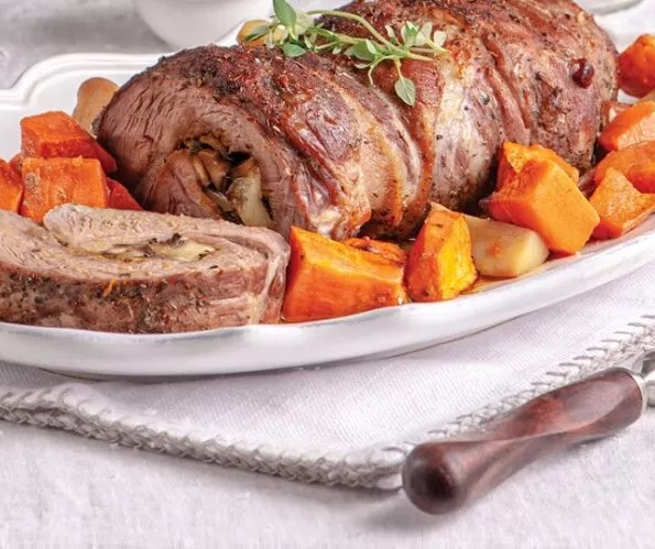 Ρολό χοιρινό με μανιτάρια και γλυκοπατάτες
