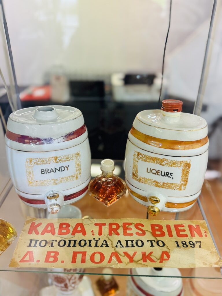 Είναι ένας χώρος μικρός αλλά γεμάτος αναμνήσεις. Παλιές φωτογραφίες στους τοίχους, εικόνες από την Κεφαλονιά, πορτρέτα του ιδρυτή Βασίλη Πολυκαλά και των επόμενων γενεών της οικογένειας Πολυκαλά. Σε μια προθήκη διακρίνω παλιές ετικέτες, χειρόγραφες συνταγές και εργαλεία άλλης εποχής.