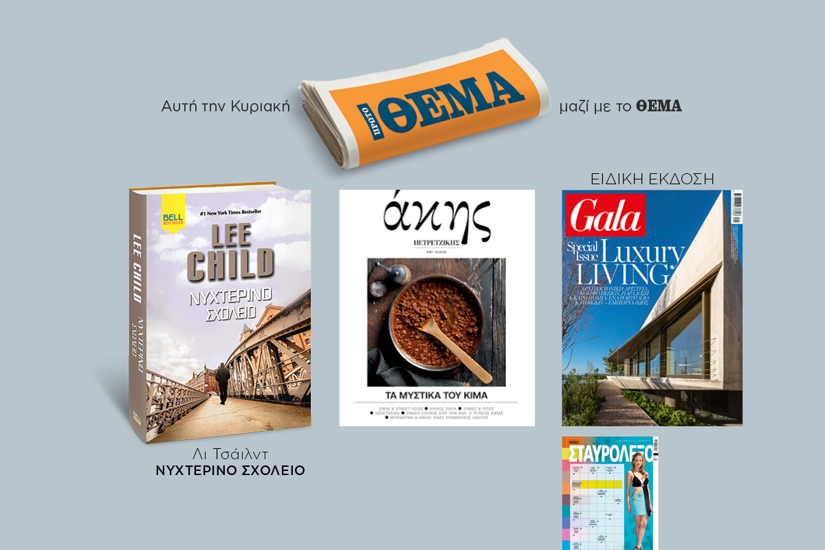 Και αυτή την Κυριακή με το ΘΕΜΑ -στην απλή έκδοση των 2 ευρώ- ένα περιοδικό 32 σελίδων για τον ελεύθερό σας χρόνο.
