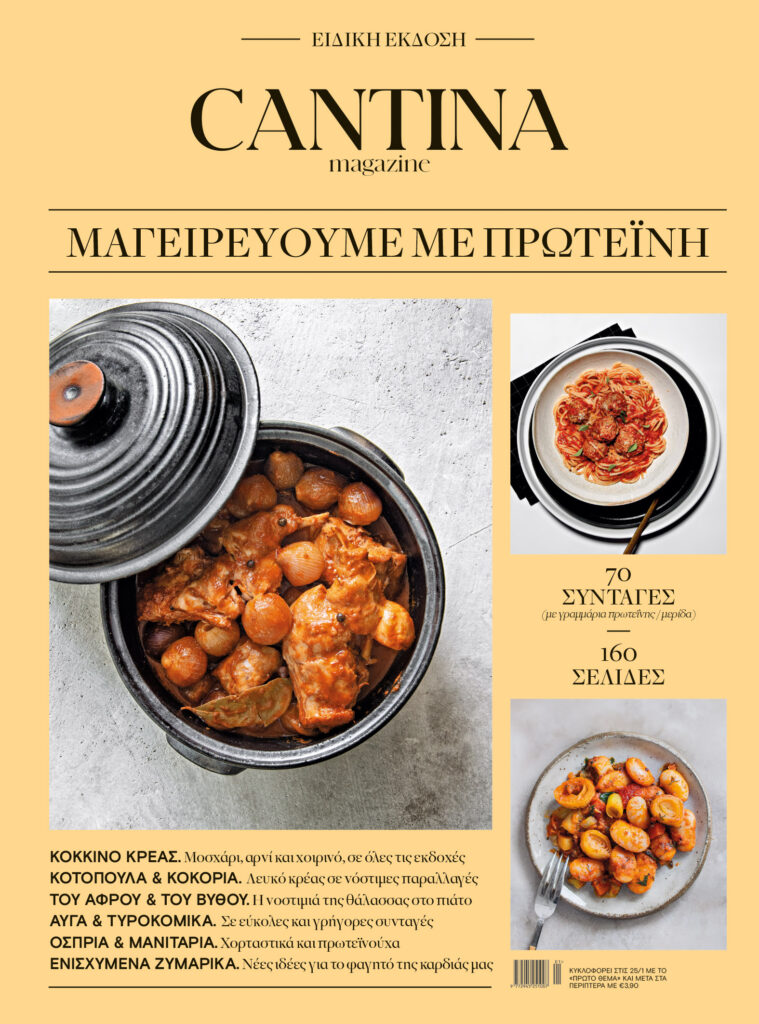 Αυτόν τον μήνα, το Cantina εξερευνά κάθε πτυχή της πρωτεΐνης, προσφέροντας ολοκληρωμένες προτάσεις φαγητού από Δευτέρα έως Κυριακή. Σε μια συλλεκτική έκδοση 160 σελίδων, παρουσιάζει 70 λαχταριστές συνταγές με μετρημένα γραμμάρια πρωτεΐνης ανά μερίδα, για να ξέρετε ακριβώς τι τρώτε.