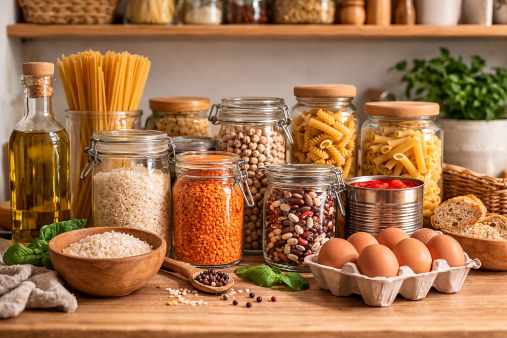 Η σωστή οργάνωση της τροφοθήκης δεν είναι μόνο θέμα οικονομίας. Είναι και ένας πρακτικός τρόπος να μειώσουμε το άγχος της καθημερινής μαγειρικής. Όταν υπάρχουν στο σπίτι βασικά τρόφιμα με μεγάλη διάρκεια ζωής, μπορούμε να ετοιμάσουμε εύκολα ένα γεύμα χωρίς να χρειάζεται καθημερινή επίσκεψη στο σούπερ μάρκετ. Με λίγα απλά υλικά όπως ζυμαρικά, όσπρια, ρύζι, ντομάτα, αυγά ή κατεψυγμένα λαχανικά, μπορούμε να δημιουργήσουμε δεκάδες διαφορετικά πιάτα.