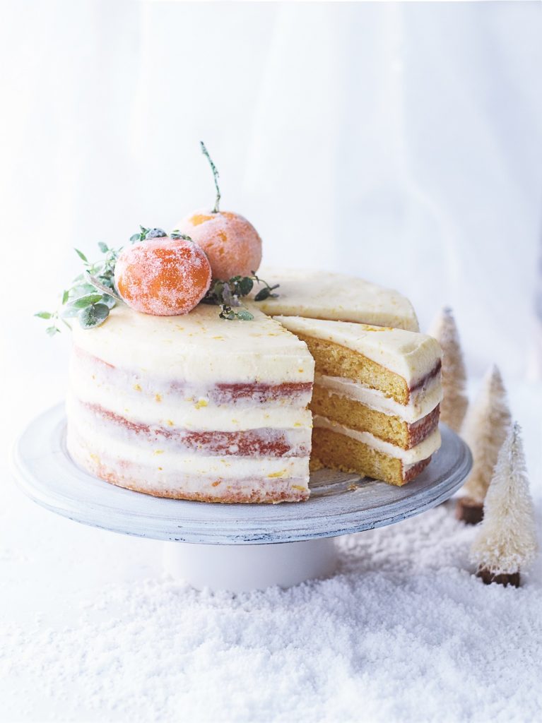 Συναρμολόγηση: Απλώνουμε μια παχιά στρώση γλάσου σε δύο παντεσπάνια και τα βάζουμε στο ψυγείο να σφίξουν για 15΄. Ενσωματώνουμε το ξύσμα στο υπόλοιπο γλάσο. Σε μια πιατέλα σερβιρίσματος ακουμπάμε το ένα παντεσπάνι πάνω στο άλλο σαν σάντουιτς και καλύπτουμε από πάνω με το τελευταίο παντεσπάνι. Με ένα μαχαίρι παλέτα αλείφουμε το υπόλοιπο γλάσο σε όλη την επιφάνεια του κέικ και διακοσμούμε με ζαχαρωμένες κλημεντίνες και κλωνάρια δεντρολίβανο ή φύλλα δάφνης.