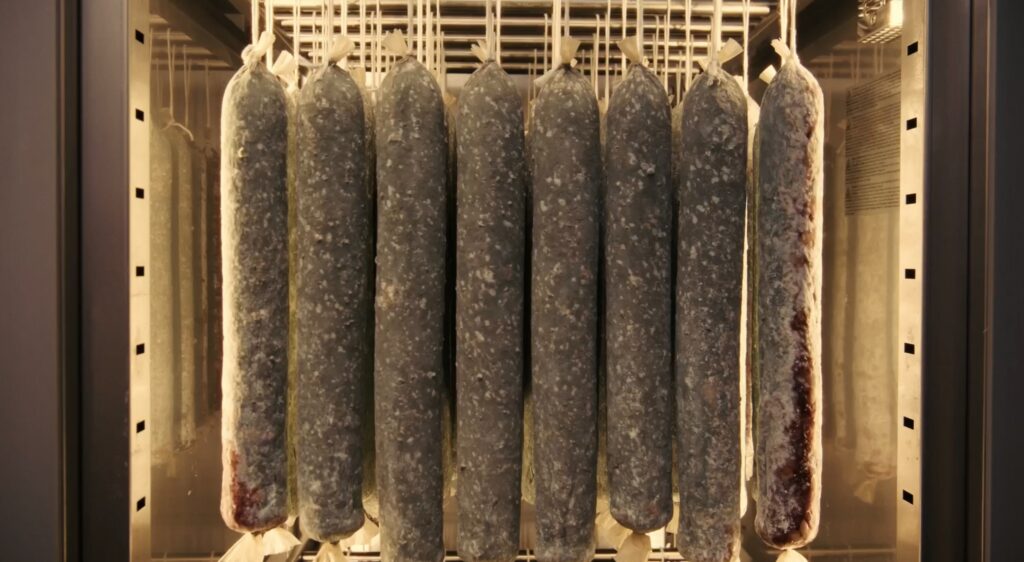 Ο χρόνος εδώ μετριέται σε μήνες. Από 90 έως 180 ημέρες για τα περισσότερα προϊόντα, έως και 24 μήνες για το prosciutto. Μέσα στους θαλάμους ωρίμασης και υπό συνθήκες θερμοκρασίας και υγρασίας που ελέγχονται με ακρίβεια χιλιοστού, το κρέας μεταμορφώνεται, αναπτύσσοντας πολυσύνθετες γεύσεις και αρώματα.
