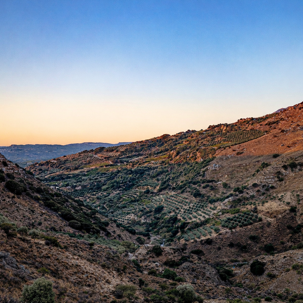 Τα ελαιόδεντρα που καλλιεργούμε, βρίσκονται σε υψόμετρο 380–520 μέτρων, σε μια περιοχή όπου ουσιαστικά ξεκινά η οροσειρά του Ψηλορείτη. Το μικροκλίμα είναι ιδανικό για την ελιά, έντονη και σταθερή ηλιοφάνεια, πλούσια εδάφη και φυσικές συνθήκες που ευνοούν την παραγωγή ελαιολάδου με μεγάλη πολυπλοκότητα.