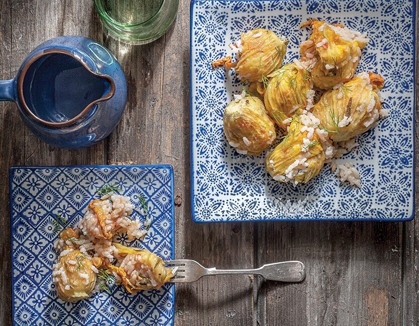 Γεμιστοί κολοκυθοανθοί με ρύζι και μυρωδικά
