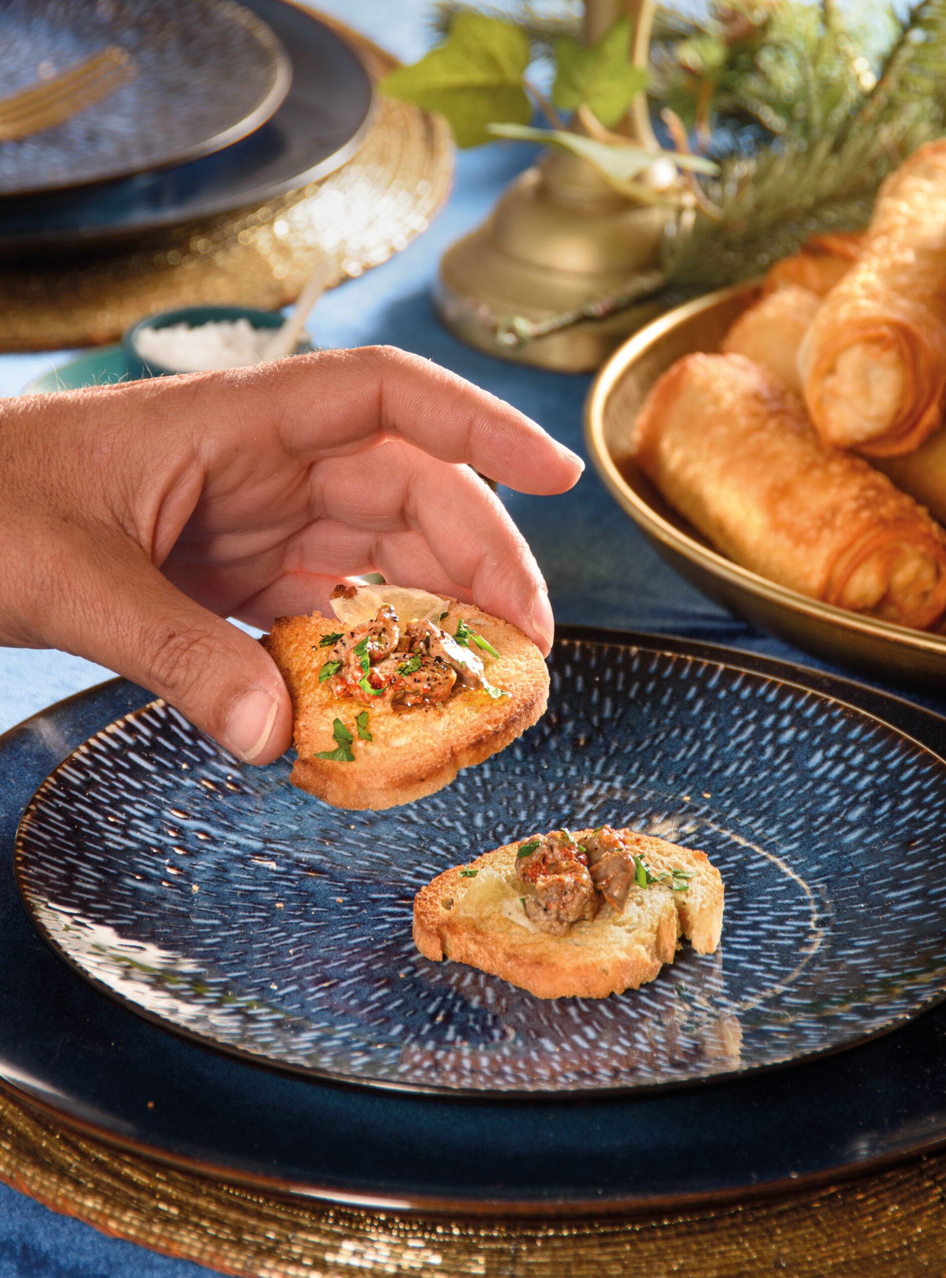 Νόστιμες μπρουσκέτες με συκώτι πεσκανδρίτσας, αρωματισμένες με μυρωδικά. Ένας εκλεπτυσμένος μεζές από τη cheffe Μάγκυ Ταμπακάκη